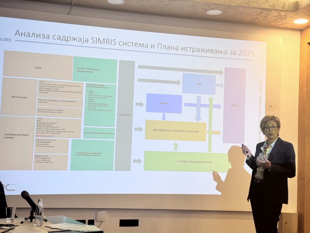 The workshop program also included a presentation of the development of the Statistical Register of activities ‘ results up to date, as well as work on establishing the metadata system on producers of official statistics, administrative sources and their linkage with the statistical surveys (SIMRIS).