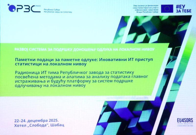 Od 22. do 24. decembra 2025, Republički zavod za statistiku organizuje radionicu „Pametni podaci za pametne odluke: Inovativni IT pristup statistici na lokalnom nivou”.